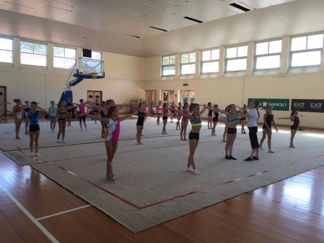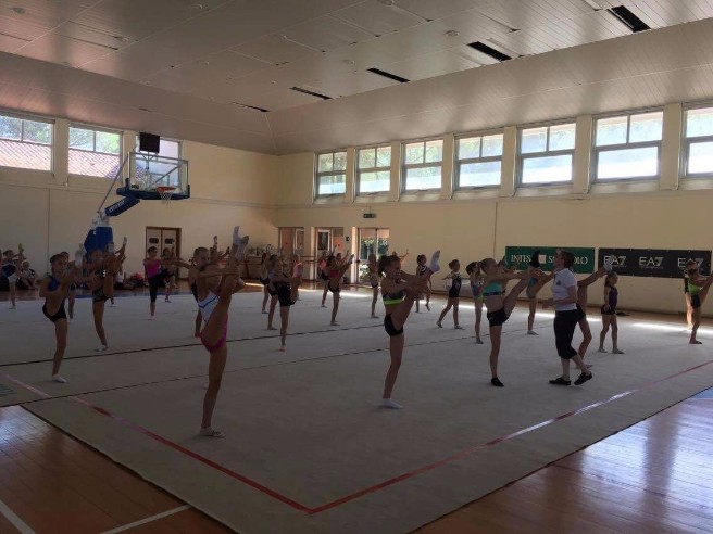 Píše Janka Ľuptáková Pozdravujeme Vás z Tirrenie, kde už poctivo trénujeme a vzdelávame sa. Kemp je zameraný prevažne na vzdelávanie trénerov, takže veľa vecí na tréningu natáčame na video. Zatiaľ sa nám tu veľmi páči, dievčatá každý deň absolvujú 90 minútovú choreografiu s ruskou trénerkou, ktorá je vynikajúca. Okrem choreografie sa venujú dievčatá aj nácviku piruet a skokov. Ďalej absolvujú 4-hodinový tréning. Na začiatku majú rozcvičenie na hudbu, po rozcvičení kruhový tréning vždy s iným trénerom a potom sa rozdelia do skupín, kde na každom náradí trénujú 45 minút s expertom náradia. Všetko robia dievčatá len prípravné cvičenia, čo je pre nás užitočné, aby sme vylepšili techniku. Okrem tréningov v rámci regenerácie chodíme každý deň na 2 hodinky na pláž.