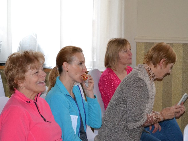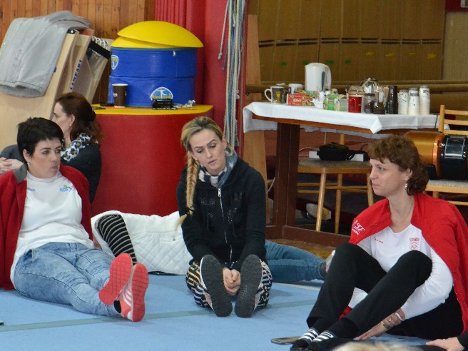 PhDr. Erika Brandnerová s dcérou Tamarou nám priblížili svoj pohľad na tvorbu a prezentáciu pohybových skladieb: v čom tie naše gymnastické skladby vylepšiť a zatraktívniť. Tejto problematike sa venujú na veľmi vysokej úrovni v oblasti show dance. Praktické ukážky ako naučiť deti vlny vo všetkých smeroch nám dali nielen zabrať, ale nás aj pobavili.