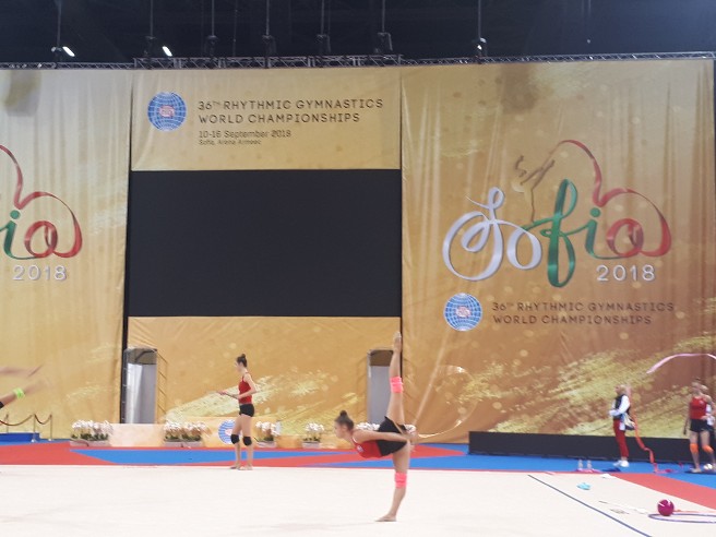 Seniorské moderné gymnastky v Sofii na M-sveta 2018