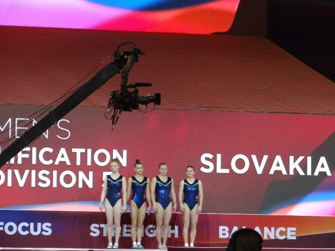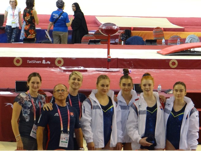 Po pódiovom tréningu píše reprezentačná trénerka Katarína Krekáňová:Źiaľ, po zranení Karolíny Takáčovej priamo v dejisku Majstrovstiev sveta naše družstvo je oslabené opäť o ďalšiu pretekárku. Dievčatá, ktoré ako tak ostali zdravé, predviedli včera na pódiovom tréningu slušný výkon, väčšie zaváhanie mali len na preskoku, ktorý musíme v sobotu odskákať omnoho lepšie.Určite nám bude chýbať počas pretekov silné jadro družstva, ale všetci veríme, že dievčatá zabojujú a odcvičia svoje maximum.
