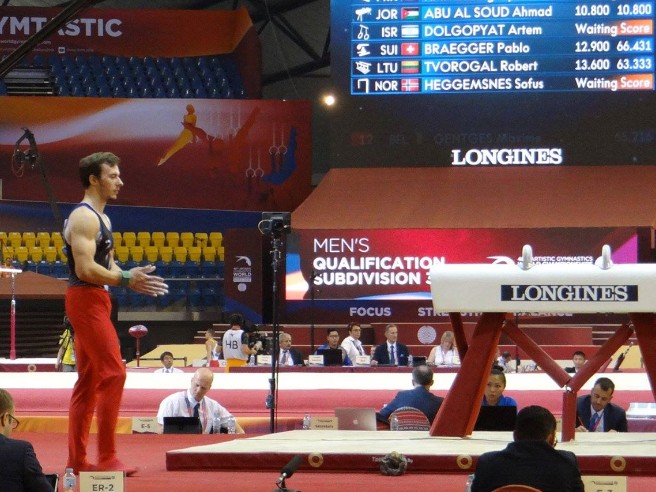 Na koni na šírku, kde v posledných rokoch dosahuje veľmi dobré výkony, sme očakávali prienik medzi najlepších. Náročnú zostavu (východzia známka 6 bodov) zacvičil dobre. Nevyhol sa žiaľ chybe v závere zostavy, kde stratil pravdepodobne 0,6 b. Domnievam sa napriek tomu, že ohodnotenie zostavy (13,333 b.) bolo nízke. V konečnom hodnotení i napriek zaváhaniu obsadil výborné 13. miesto !!! K postupu do finále medzi najlepšiu osmičku pretekárov sveta mu chýbalo naozaj málo.