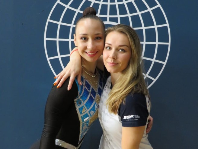Včera 25.05.2019 prebehla na Majstrovstvách Európy v Baku kvalifikácia seniorov. V nej nás ako prvá reprezentovala Alena Učňová z klubu VŠK FTVŠ UK , pre ktorú to bola premiéra na takomto podujatí. Pôsobila vyrovnane a zašla peknú zostavu. Nepodarilo sa jej dosiahnuť plnú obtiažnosť, no aj napriek tomu zvýšila svoje osobné skóre na 18,650 b. a skončila ako 22.. S jej výkonom sme boli spokojní. Po nej nasledovala naša jednotka, Anita Lamošová z klubu VŠK FTVŠ UK. Anita musela bojovať s tlakom okolia ale aj samej seba. V súťažnej zostave postupovala od prvku k prvku s rozumom a v aerobikových krokoch bola stabilná. Zašla veľmi kvalitnú zostavu na úrovni s plnou obťažnosťou a pokorila 20tku na súťaží tohto typu. S výslednou známkou 20.050 obsadila 14.miesto z 34 senioriek. Veľkou podporou a oporou našich reprezentantiek, bola trénerka Patra Tomková.