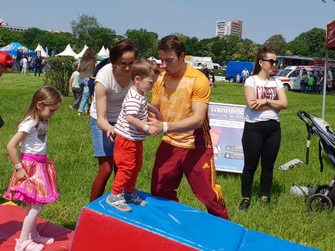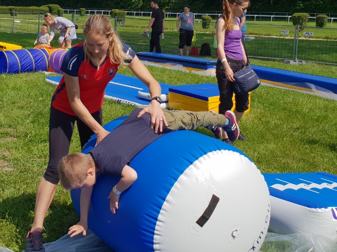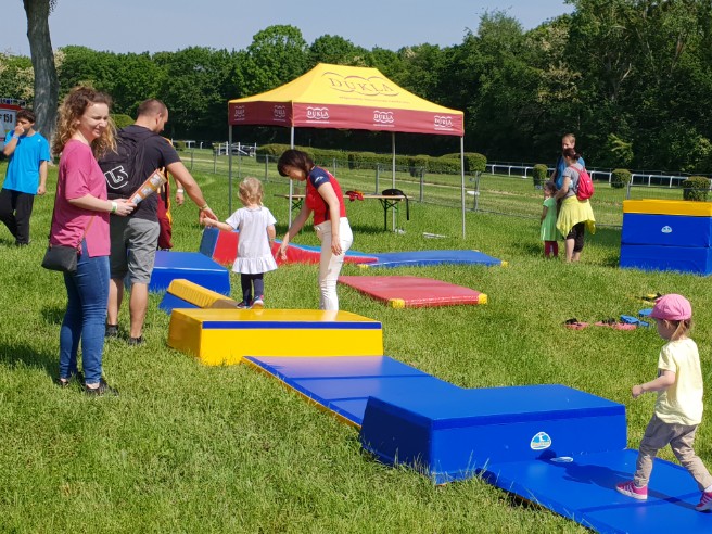 Slovenská gymnastická federácia sa už po druhýkrát tohto festivalu zúčastnila a propragovala gymnastické športy. V spolupráci s firmou JIPAST sme v sobotu 25.5.2019 na stanovišti pripravili pre deti prekážkovú dráhu, kde si mohli vyskúšať rôzne cvičenia zábavnou formou. Naše stanovište malo u detí veľký úspech a niektoré z nich ostali s nami cvičiť dlhú dobu a prekážkovú dráhu prešli veľakrát, iné sa s našou pomocou naučili robiť kotúle. Spojením síl so stánkom VŠK Dukla Banská Bystrica, ktorý mal na starosti náš reprezentant Slavomír Michňák sme mohli deťom poskytnúť viac odbornej pomoci. Zaujímavé boli rozhovory s rodičmi, ktorí si zisťovali kde môžu deti na gymnastiku prihlásiť, ako vyzerá gymnastický tréning, v akom veku môžu s gymnastikou začať a podobne. Veríme, že naše kluby aj s prispením takejto propagácie získajú nových členov.