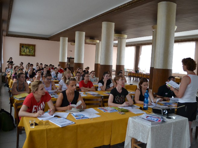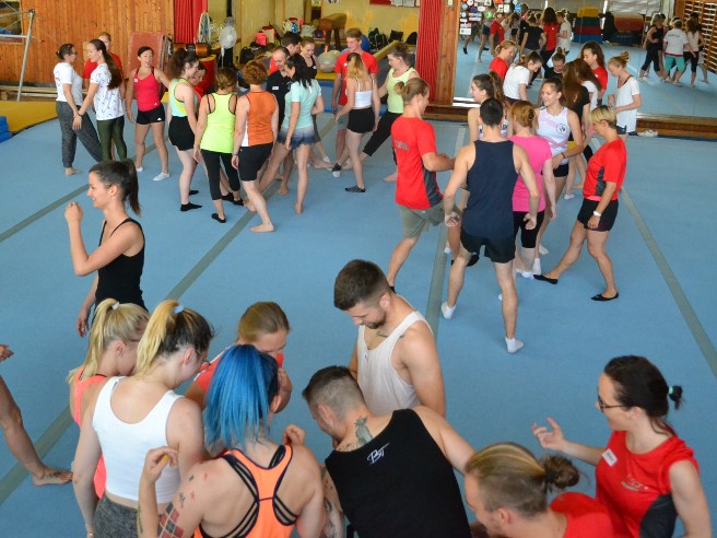 V dňoch 14.-16.6.2019 sa konala v Prievidzi, v gymnastickej hale organizujúceho klubu GK Elán Prievidza, 1. časť špeciálnej časti kurzu trénerov I. stupňa v gymnastike pre všetkých. Celková účasť bola veľmi vysoká - 46 trénerov z 25 klubov SGF, ale aj neregistrovaných klubov. Zaujímavé bolo zloženie skupiny, keď sme medzi účastníkmi mohli nájsť športových gymnastov, moderné gymnastky, cvičencov parkouru, rockńrolu, fitnesu, športového aerobiku a samozreme gymnastiky pre všetkých. Vzájomné diskusie a výmena skúseností bola veľmi bohatá a rôznorodá, čo dávalo vynikajúci základ pre obsah školenia tohto typu. Školiteľkami boli Monika Šišková, predsedníčka sekcie GpV SGF, Mária Kotríková, členka sekcie GpV SGF a po prvýkrát naše rady rozšírila Dagmar Strmenská. Teóriu hudby nám pomohol príblížiť Ján Strmenský.