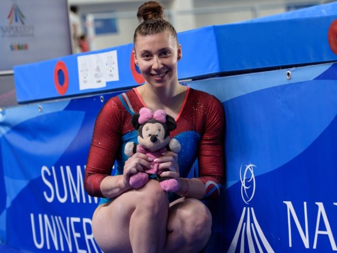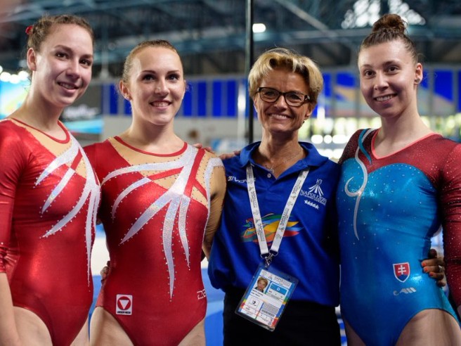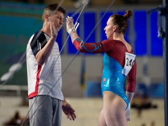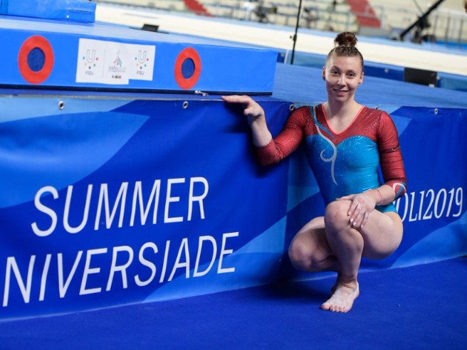 Po vážnom zranení členka z minulého roku je to výborný návrat medzi gymnastickú elitu. Noha ešte nieje v dobrej kondícii a úplne fit, po včerajších pretekoch je "opät veľká". Po zvážení všetkých pre a proti (dnes je finále viacboja do 20:30, zajtra finále na náradiach na obed, zdravotný stav, ...) sme dospeli k rozhodnutiu, že dnes na viacboj nenastúpi a budeme sa sústrediť na zajtrajšie finále bradiel a kladiny."