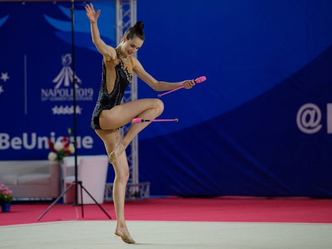 Xénia KILIANOVÁ dnes dokončila svoj štvorboj na 30. Svetovej letnej univerziáde v Neapole (ITA) ???? Z 32 pretekárok sa umiestnila na 18. mieste v zostave s loptou (15,750) a v zostave so stuhou (14,200). Za obruč získala 14,650 boda čo stačilo na 20. miesto. Kužele tentokrát nevyšli...