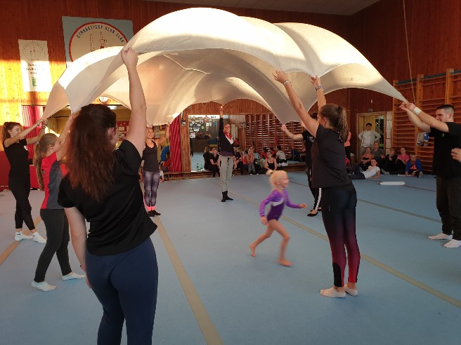 Poďakovanie patrí Gymnastickému klubu Elán Prievidza, ktorý pre účastníkov kurzu pripravil vynikajúce podmienky a počas obidvoch častí po organizačnej stránke zabezpečovali chod kurzu Edita Ertlová a Oľga Čičmancová. Prvú časť kurzu s nami absolvovala aj predsedníčka GK Elán Prievidza Natália Plevková Svitková, ktorá si počas druhej časti plnila materské povinnosti. V neposlednom rade patrí poďakovanie aj školiteľkám Márii Kotríkovej, Dagmare Strmenskej a Barbare Minárikovej, ktoré viedla predsedníčka sekcie GpV SGF Monika Šišková.