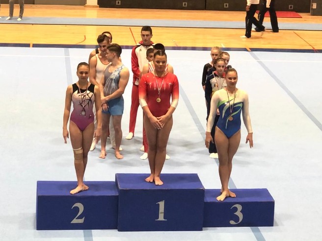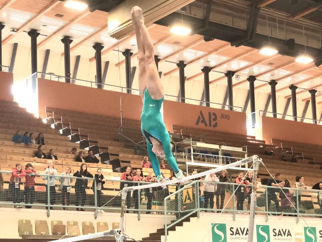 Najlepšie sa darilo našej jednotke Sáre Surmanovej, ktorá okrem víťazstva na bradlách pretekala aj na preskoku a kladine, kde zhodne skončila na 7. mieste. Katka Smolková na bradlách obsadila 7. miesto a Adela Balcová na kladine 8. miesto.