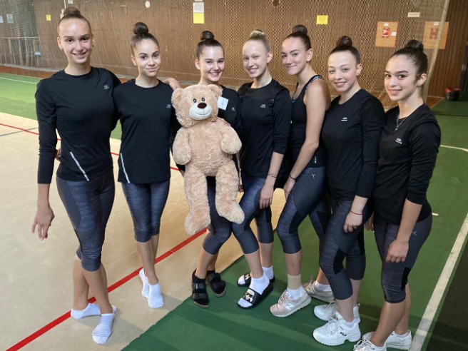 Po 2-týždňovej individuálnej príprave sa moderné gymnastky opäť stretli v Nitre. Keďže bez práce nie sú koláče, začína tak ďalšie sústredenie seniorskej spoločnej skladby. Už 22.11. vystúpia so skladbou s 3 obručami a 2 pármi kužiel (choreografia: Natalia Stspianava, trénerka: Adela Dimova) na medzinárodnej súťaži Christmas Nitra 2019.