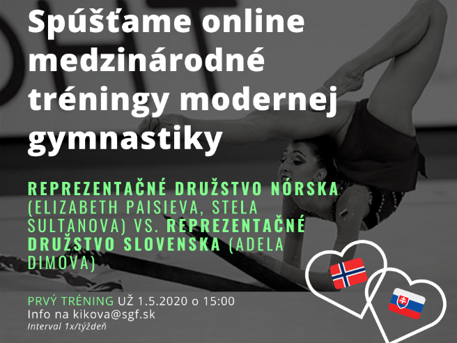 "Stratili" sme športové haly a telocvične ale nestratili sme skutočných priateľov. A aj vďaka nim sa nám podarilo pre naše gymnastky pripraviť na každý týždeň jeden online medzinárodný tréning s hviezdami medzinárodnej modernej gymnastiky. Pretože SME V TOM SPOLU! Najbližšie si svoje sily porovnajú reprezentačné družstvá Nórska a Slovenska a to už 1.5.2020 o 15:00.