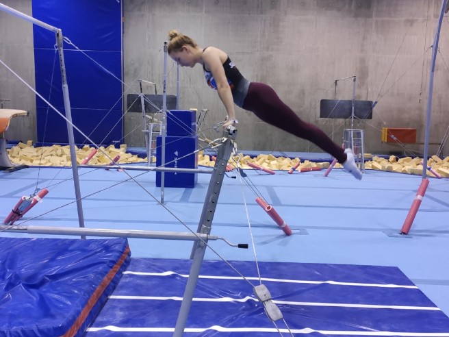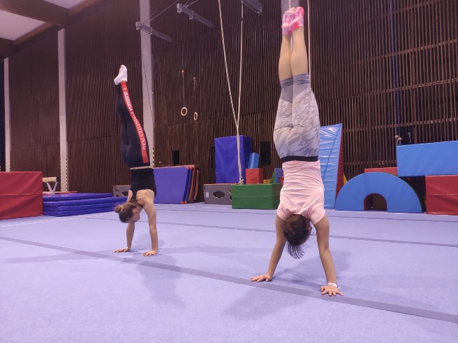 Piaty deň v bubline je tiež už za nami. Po rozcvičke na čerstvom vzduchu v mrazivom ráne sme ďalšiu časť tréningov venovali nevyhnutnej akrobacii. Podmienky v gymnastickej hale sú viac ako ideálne. V ďalšej fáze sme už „nabehli“ na zostavy v zľahčených podmienkach.